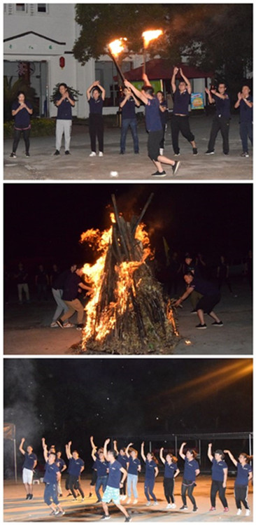 第一天的拓展围绕“凝心聚力”展开,通过完成“抢滩登陆”、“信任背摔”及“穿越雷阵”项目,培养全体成员同心协力共同战胜困难的决心与信心。包括了团队之间的相互竞争,内部成员之间的相互配合,以及个人心里素质的挑战。晚饭之后的篝火晚会,大家围着熊熊篝火歌舞升平,在各种小游戏中放松心情,缓解疲劳,为第二天的培训储备更多的能量。